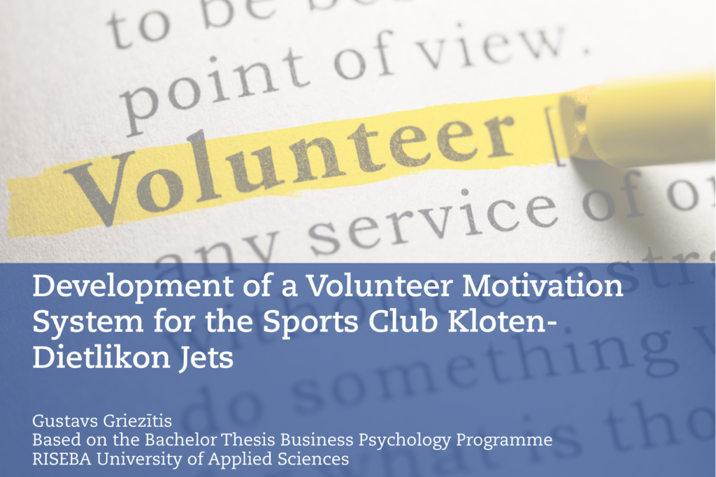 Basierend auf der Bachelorarbeit im Bereich Wirtschaftspsychologie hat von Gustavs Griezītis eine organisationsbezogene Analyse für die Kloten-Dietlikon Jets erstellt, die das freiwillige Engagement untersucht und konkrete Empfehlungen für ein strukturiertes Motivationssystem formuliert.